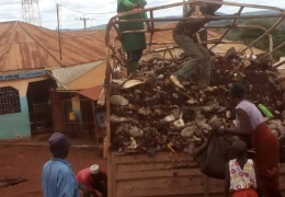 Posted on: April 18th, 2020 Mkurugenzi  Mtendaji  wa Halmasahuri ya Wilaya ya  Kibondo Ndg Rutema D.M  akiwa juu ya lori  (aliyevaa ovaral ya kijani)  kupakia taka katika eneo la Kibondo Mjini ....