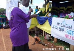 Posted on: November 9th, 2017 Ndg: Terry Raphael, Mratibu wa Mazingira  Shirika la TCRS Wakimbizi Wilayani Kibondo, amesoma taarifa ya Mradi wa Maji, Afya, Usafi wa Jamii na Mazingira wilayani Kibondo Mbele ya Mgeni rasmi Mku...
